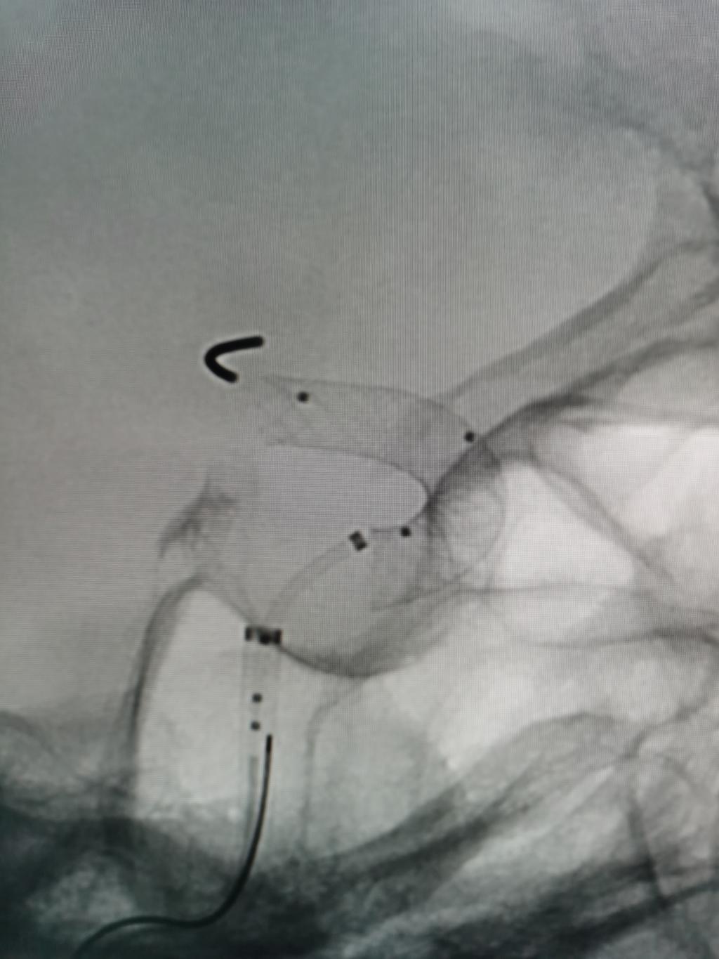 在李俊教授的精准指导与团队的密切配合下,手术医师通过纤细导管,将一枚Lattice密网支架精准输送至目标位置,成功释放在动脉瘤远近端,实现对瘤颈的完美覆盖。术后即时造影显示,动脉瘤内血流明显滞留,支架贴壁良好,载瘤动脉保持通畅,手术目标圆满达成。