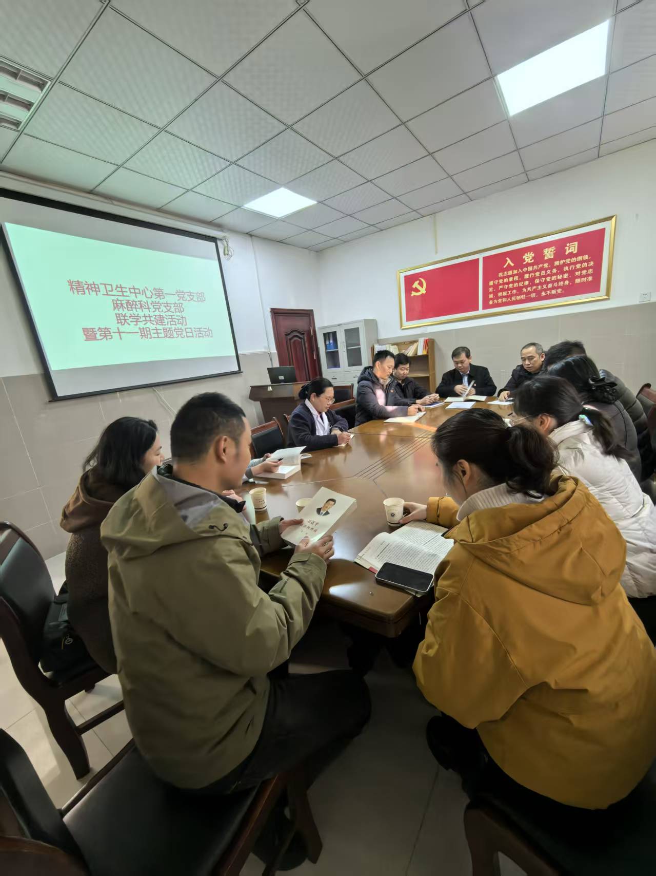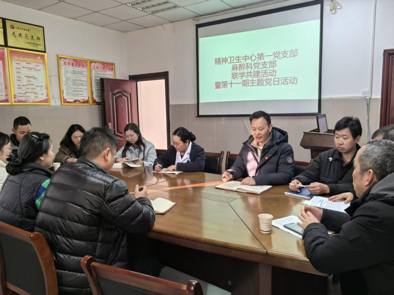 为深入学习贯彻习近平新时代中国特色社会主义思想,推动党建与业务深度融合,凝聚支部发展合力,2025年12月25日,湖北科技学院附属第二医院麻醉科党支部与精卫中心第一党支部联合举办联学共建暨第十一期主题党日活动。麻醉科全体党员积极参与,在理论研学、思想碰撞与廉政淬炼中凝聚共识、锤炼党性,为科室高质量发展注入强劲动能。活动由精卫中心第一党支部书记祝峰主持。