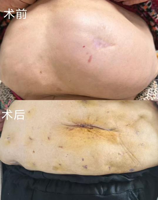 黄婆婆(化名)曾因胃石症接受腹部手术,术后切口处逐渐长出包块,且在近半年内迅速增大至直径 40cm。随着包块膨出,腹腔内肠管、网膜等器官从腹壁缺损处突出,不仅严重影响她行走、弯腰等日常活动,还引发腹胀、消化不良等不适。