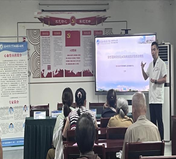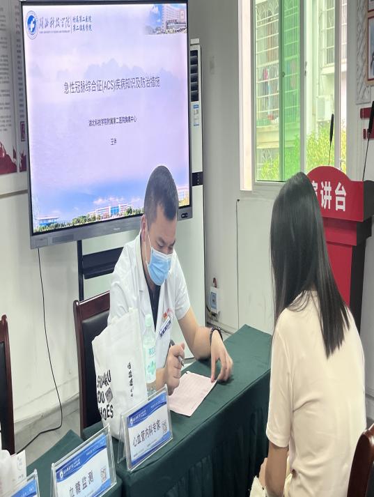 随后,心血管内科王伴主任以 “急性冠脉综合征的防和治” 为核心主题,为现场居民带来了一场通俗易懂的健康宣讲。王主任结合临床案例,详细讲解了急性冠脉综合征的发病诱因、早期识别方法、紧急处理措施及日常预防要点,同时围绕高血压、高血脂、冠心病等常见心血管疾病的科普知识展开延伸,用接地气的语言打破专业医疗知识的 “壁垒”。宣讲过程中,居民们认真聆听、不时记录,现场互动频繁,针对自身健康疑问积极提问,王主任均逐一耐心解答,氛围热烈而温馨。