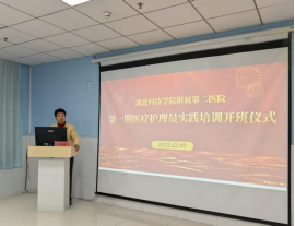开班仪式上,护理部唐春花主任详细解读了本次培训的核心内容与管理要求,明确学习重点与纪律规范,为学员后续学习筑牢方向指引。授课教师代表黄娟护士长代表发言时表示,授课团队由护理部资深管理者、临床一线护理精英组成,将凭借丰富实践与教学经验,为学员带来生活照护、基础护理、心理关怀等多维度知识培训,助力学员成长为患者信赖的健康守护者。学员代表王文兵现场承诺,将以饱满热情、务实态度投入培训,潜心钻研技能,全力完成学习任务。