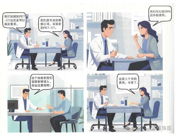 《九项准则》规定:“除因需要在医联体内正常转诊外,严禁以谋取个人利益为目的,经由网上或线下途径介绍、引导患者到指定医疗机构就诊。”极个别医务人员为了蝇头小利,无视法律法规,将本单位诊疗的病人有偿转介到其他医疗机构或第三方检验机构就医,损害患者权益,破坏正常的诊疗秩序,涉嫌违规违纪甚至违法。